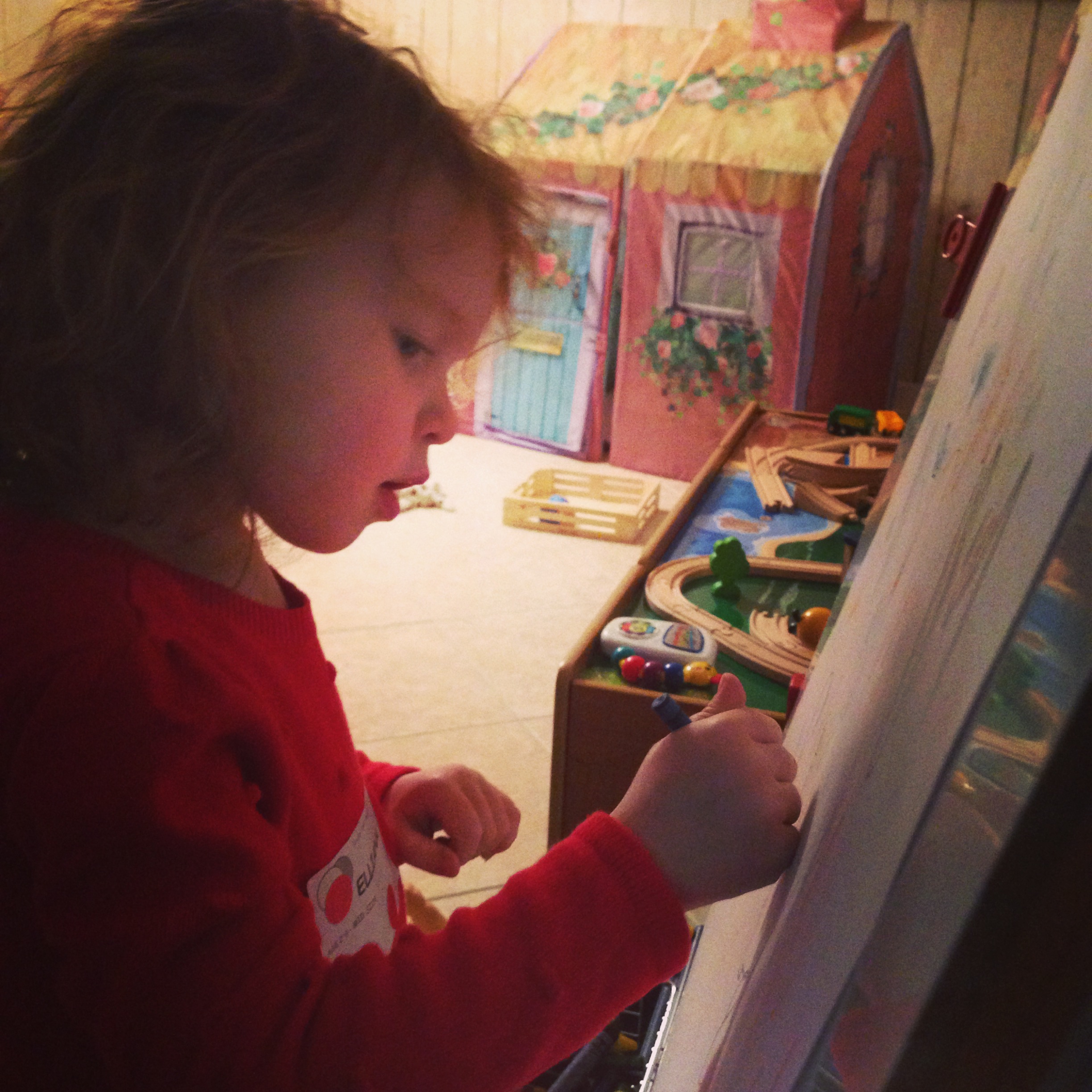 And then there was the dull staccato of little feet running on the carpet, flying around the banister and drumming down the stairs.
