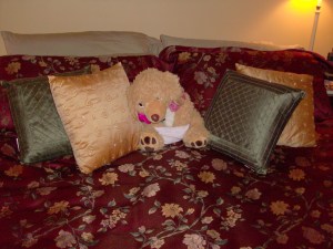 Ed is our stuffed dog that has sat on our bed every day since our first married Valentine’s day in February 2004.  Ed has traveled from Naperville to Milwaukee to Oak Creek to storage (woops, sorry Ed) to the suburbs of Chicago.