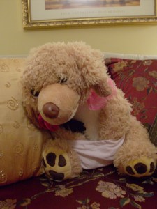 Second – I would also like to say that I did not, in my loneliness while Frank was gone, come up with this underwear scenario.  I have NOT fallen off of the edge of reality (yet).  Frank dressed Ed up before he left for work last week to make me laugh.  I do not ACTUALLY think that Ed does this all on his own.